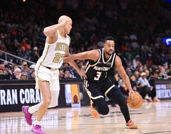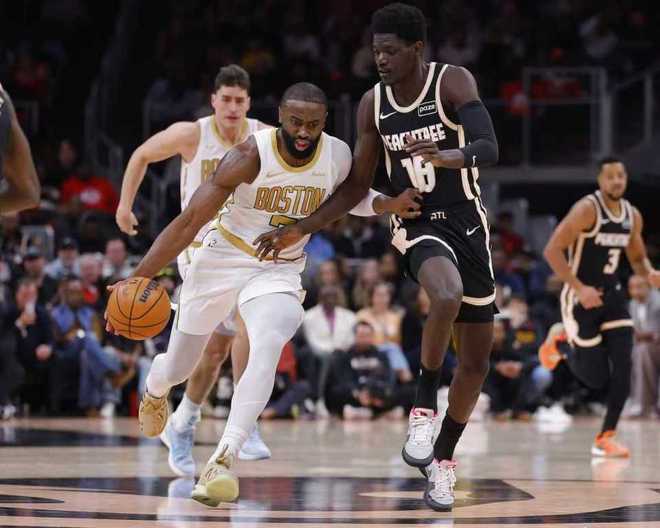 凯尔特人上一次客场119-114险胜热火,老鹰过去两场连续客场输给湖人与开拓者遭遇2连败。本场老鹰缺少丹尼尔斯、里萨谢与波尔津吉斯,凯尔特人缺少普里查德、塔图姆与米诺特。首节开局凯尔特人7-2领先,布朗持续得分率队扩大14-6领先优势,老鹰连追5分。布朗继续火力全开率队拉开优势,布朗打满首节13中6狂轰18+2+2,首节比赛结束凯尔特人30-23领先老鹰。首节凯尔特人23中11,其中三分9中3,老鹰仅23中8,其中三分7中2,杰伦3中0仅得到1分与麦科勒姆5中1得到4分。