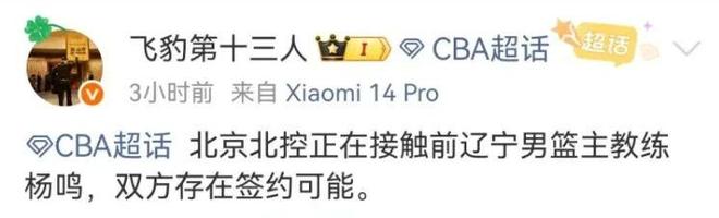自从杨鸣在辽宁男篮卸任了主教练的职务后,又开始进行赛事解说。从在辽宁男篮执教的履历来看,杨鸣的执教能力还是非常不错的,带队完成过三连冠。辽宁男篮本赛季的表现有些糟糕,作为主教练的杨鸣虽然难辞其咎,但更重要的是球队的阵容问题比较大。在媒体人杨毅透露出有球队在接触杨鸣的消息后,这件事有了最新进展。据知情人透露,接触杨鸣的球队是北控男篮,双方存在签约的可能性。