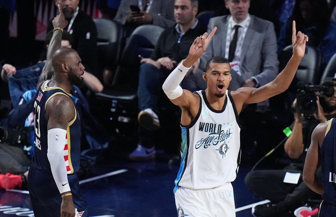 再聊聊黑榜。黑榜前二分别给到东契奇和约基奇,表现有起伏很正常,但态度却是自己能决定的,很遗憾,东约两位老师主动放弃了,他们的表现配不上这场盛宴。一直以来都在全明星赛出工不出力的莱昂纳德,因为这次赛事在自家主场举办,给足了主场球迷面子,是真的满功率输出,同为世界队翘楚的文班亚马也是全身心投入,约老师和卢卡呢?因为首场的消极怠工,第二场直接被摁在了板凳席上,真的挺扫兴的,但凡他们认真点,文班会这么拔剑四顾心茫然吗?