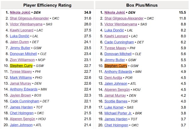 高阶数据方面,库里本赛季的PER值22.7、BPM值+5.3,两项均排在联盟第十,也能说明他拥有竞争最佳阵容的可能性——最佳一阵和二阵不太可能,但三阵可以争一下。