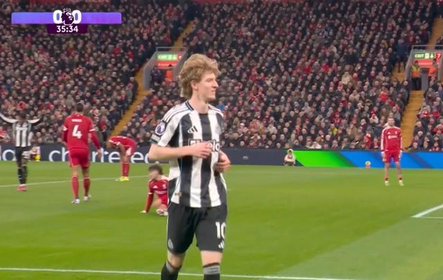 此役客场对阵利物浦,安东尼-戈登在比赛第36分钟破门,帮助纽卡斯尔联取得1-0领先。