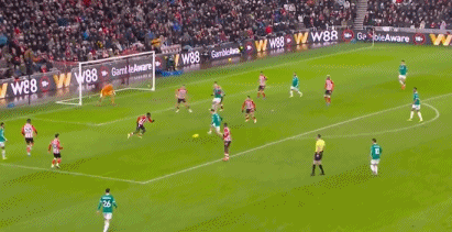 第33分钟,加克波左路突破下底倒三角传球,维尔茨停球摆脱一气呵成,随后起脚低射远角,击中立柱弹出。
