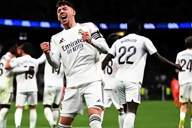 皇马本轮之前只有57分,只落后巴萨1分,他们看到了登顶的机会。本轮主场对阵中游的皇家社会,虽然姆巴佩缺阵,但是凭借维尼修斯的点射双响,贡萨洛和巴尔韦德的进球,还是收获了一场4-1的大胜,豪取西甲8连胜,积分率先突破60分,多赛一轮反超巴萨1分,暂时登顶榜首。
