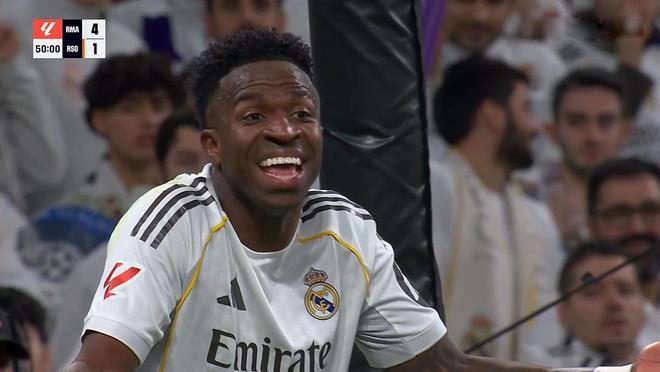 半场回来不到一分钟,阿兰布鲁禁区再度放倒维尼修斯,裁判又给了一粒点球,维尼修斯再度主罚命中,4:1!大比分领先后,皇马逐渐做出换人调整,卡瓦哈尔、阿拉巴披挂登场。而皇家社会同样针对性地做出调整,并且在针对维尼修斯的防守方面,做出部署。