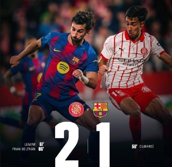 巴萨让出西甲榜首位置!北京时间2月17日凌晨,西甲第24轮上演加泰罗尼亚德比,巴塞罗那客场挑战赫罗纳。在蒙蒂利维市政球场,巴萨球迷经历了一个令人窒息的夜晚:库巴西先拔头筹,但赫罗纳迅速扳平,终场前贝尔特兰绝杀!加上亚马尔射失点球和两次中柱的霉运,巴萨最终客场1比2惨遭逆转,不仅丢掉榜首,还目送皇马以2分优势登顶。