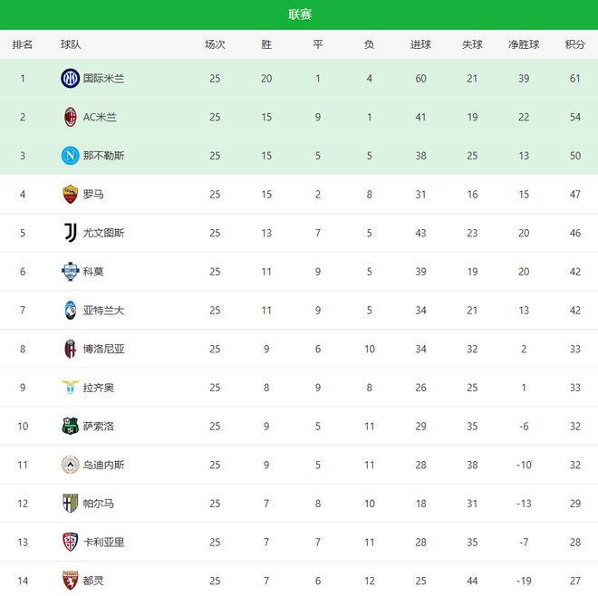 随着AC米兰1-1爆冷+国际米兰笑纳!意甲最新积分榜:2-5名差8分